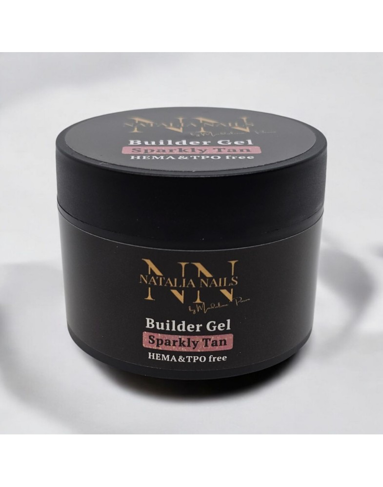 Gelul Sparkly Tan este un nude cu reflexii fine de auriu, ideal pentru manichiuri calde și naturale.