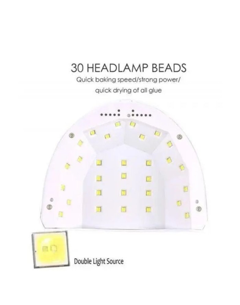 Cele 30 de leduri ale lămpii, cu până la 50.000 de ore de lumină continuă, sunt poziționate ideal pentru o uscare rapidă și atent create pentru protejarea pielii și a ochilor de posibilele reacții negative.